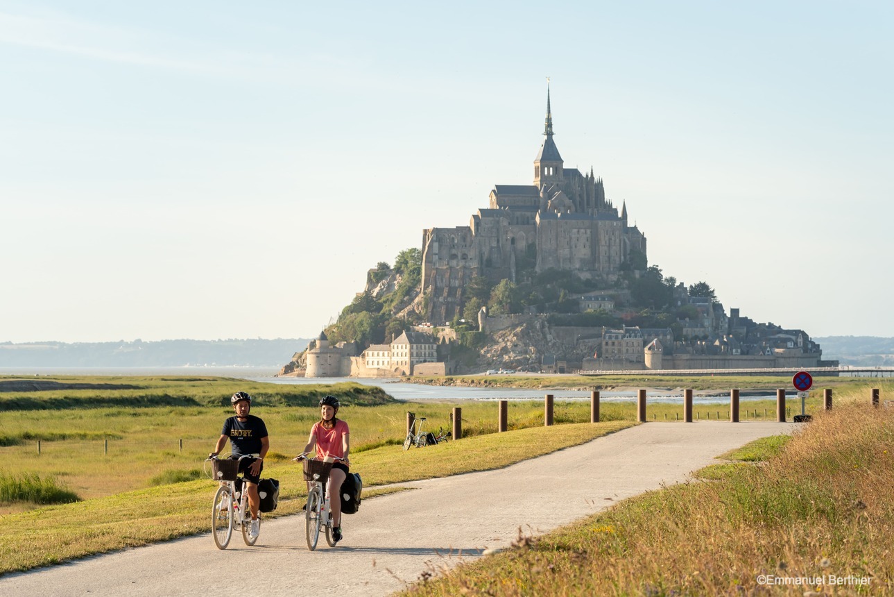 Finally, you finish your itinerary in the direction of Mont-Saint-Michel. As you pedal along, you leave the Normandy bocage behind you to take in the marshes. From there, you arrive on a road that allows you to contemplate France’s most visited monument.