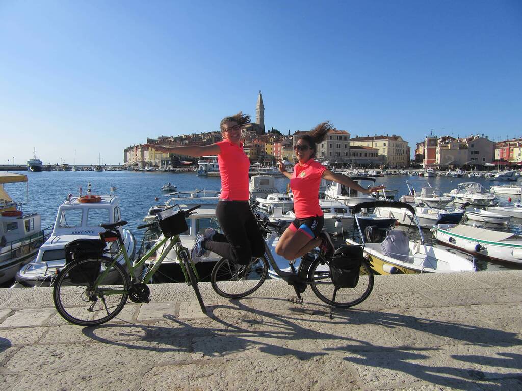 Le départ du circuit en Italie et l’arrivée en Croatie Nous sommes arrivées à Trieste en Italie pour tester un nouveau circuit à vélo en Croatie. Cette année, nous avons décidé de vous faire découvrir la Croatie autrement à travers une région méconnue nommée l’Istrie. Après quelques heures d’avion et une escale à Rome, nous arrivons en Italie et rencontrons  Dalibor qui nous emmène à Buje, petit village perché dans la montagne en Istrie. Après être passées par la Slovénie, nous avons découvert un hôtel charmant et un village ravissant du nom de Buje. Quelle ne fut pas notre surprise en découvrant que la spécialité culinaire de cette région n’était autre que la truffe. Nous avons donc pu déguster au restaurant de l’hôtel différentes spécialités inspirées de la cuisine italienne telles que la charcuterie, les pâtes à la truffe et même, cerise sur le gâteau, des champignons cuits au feu de bois. Nous étions d’ores et déjà séduites par cette région et étions sures qu’elle allait nous réserver de nombreuses surprises. Découverte des villages croates à vélo Nous sommes parties le matin suivant en direction de Motovun. Nous nous sommes agréablement baladées entre vignes et oliveraies. Nous avons découverts de merveilleux villages croates médiévaux comme Groznjan. Ce village perché nous a permis de profiter d’une vue imprenable sur les montagnes croates. Les petites rues, magasins de souvenirs et de truffes, galeries d’arts et églises donnent à ce village un charme tout à fait remarquable. Nous sommes avons aussi traversé le ravissant village d’Oprtalj, Nous avons ensuite poursuivi notre route en profitant de la vue sur la rivière Mirna afin d’arriver à Livade. Nous avons fait un stop bien mérité dans le « truffle center », magasin spécialisé sur la truffe pour y acheter quelques spécialités. A la sortie du magasin, nous pouvions apercevoir le village perché dans lequel nous allions passer la nuit : Motovun. Nous savions que la côte allait être assez rude à vélo mais une fois que nous sommes arrivées au sommet, nous n’avons pas été déçues. Le village est vraiment charmant et typique. La vue sur la vallée est imprenable et à couper le souffle. Nous avons profité d’un succulent repas dans un restaurant du village et y avons passé une nuit paisible profitant du calme et de la sérénité du lieu. Des villages perchés à la côte Adriatique Le lendemain nous avons poursuivi notre route jusqu’à Porec. Nous avons pu profiter de la campagne et des villages croates avant de longer le bord de mer. Changement de décor et découverte de la côte Méditerranéenne en Croatie. La journée fut très plaisante. Nous avons beaucoup apprécié la vue sur le littoral mais aussi sur les oliviers et les vignes. Nous avons même pu partir à la découverte d’une grotte bien connue dans la région. A la fin de la journée, nous sommes arrivées à Porec et avons pu flâner dans ses rues agréables et profiter de son port de plaisance tout à fait reposant. Après avoir passé la nuit à Porec, nous avons continué à rouler jusqu’à Rovinj, notre dernière étape. Nous avons eu tout au long de la journée un magnifique panorama sur le litoral Adriatique. Nous sommes passées par des villages chargés d’histoire tels que Vrsar connu pour avoir accueilli le célèbre Casanova ou encore Bale, un merveilleux village médiéval aux couleurs chaudes rappelant l’Italie voisine. La journée à vélo s’est terminée en arrivant à Rovinj, appelé aussi « petite Venise ». C’est une jolie ville balnéaire colorée. Nous sommes arrivées tout d’abord sur la port de plaisance très animé avec ses nombreux cafés. Nous sommes ensuite parties nous promener dans les ruelles pavées de Rovinj. Une vraie merveille méditerranéenne…Les palais sont magnifiques et la vue sur la mer d’un bleu profond reste dans les mémoires. Nous y avons visité une église surplombant la mer et avons fait un peu de shopping avant de prendre le chemin de retour en voiture jusqu’à Trieste. Nous avons été enchantées de découvrir cette région qui mérite d’être connue tant par ses paysages bucoliques, son histoire, ses spécialités culinaires que pour ses villes méditerranéennes colorées. Avec regrets, nous avons ensuite repris la voiture jusqu’à Trieste y avons passé la nuit (non sans goûter aux spécialités italiennes, nous sommes gourmandes!). Nous avons alors repris notre avion le lendemain matin aux aurores pour pouvoir rentrer au bureau et mettre en forme ce séjour afin que vous puissiez en profiter à votre tour la saison prochaine!