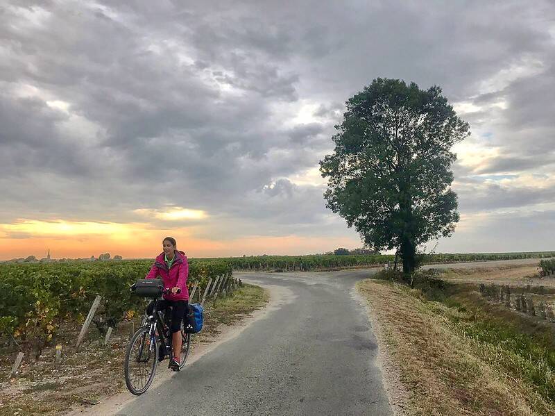 Après quelques heures de repos bien méritées à Bordeaux, il est temps de remonter en selle et de repartir sur les routes ! Une fois le bon brunch fait maison avalé, nous enfourchons nos vélos pour quitter Bordeaux. Nous décidons d’emprunter le même itinéraire que la veille pour rejoindre Margaux – ville où nous passerons la nuit et nous découvrons le parcours sous un autre angle, sous un temps alternant averses et éclaircies.