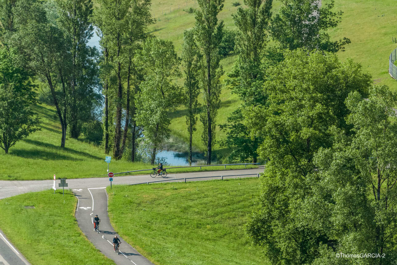 Vous suivez paisiblement les bords du Rhône sauvage sur piste cyclable avant de traverser le fleuve pour vous rendre à Glandieu, bourgade nichée au pied du Massif du Bugey. C’est l’heure de la pause photo devant l’impressionnante cascade de 60 mètres de haut, située en plein cœur du village !